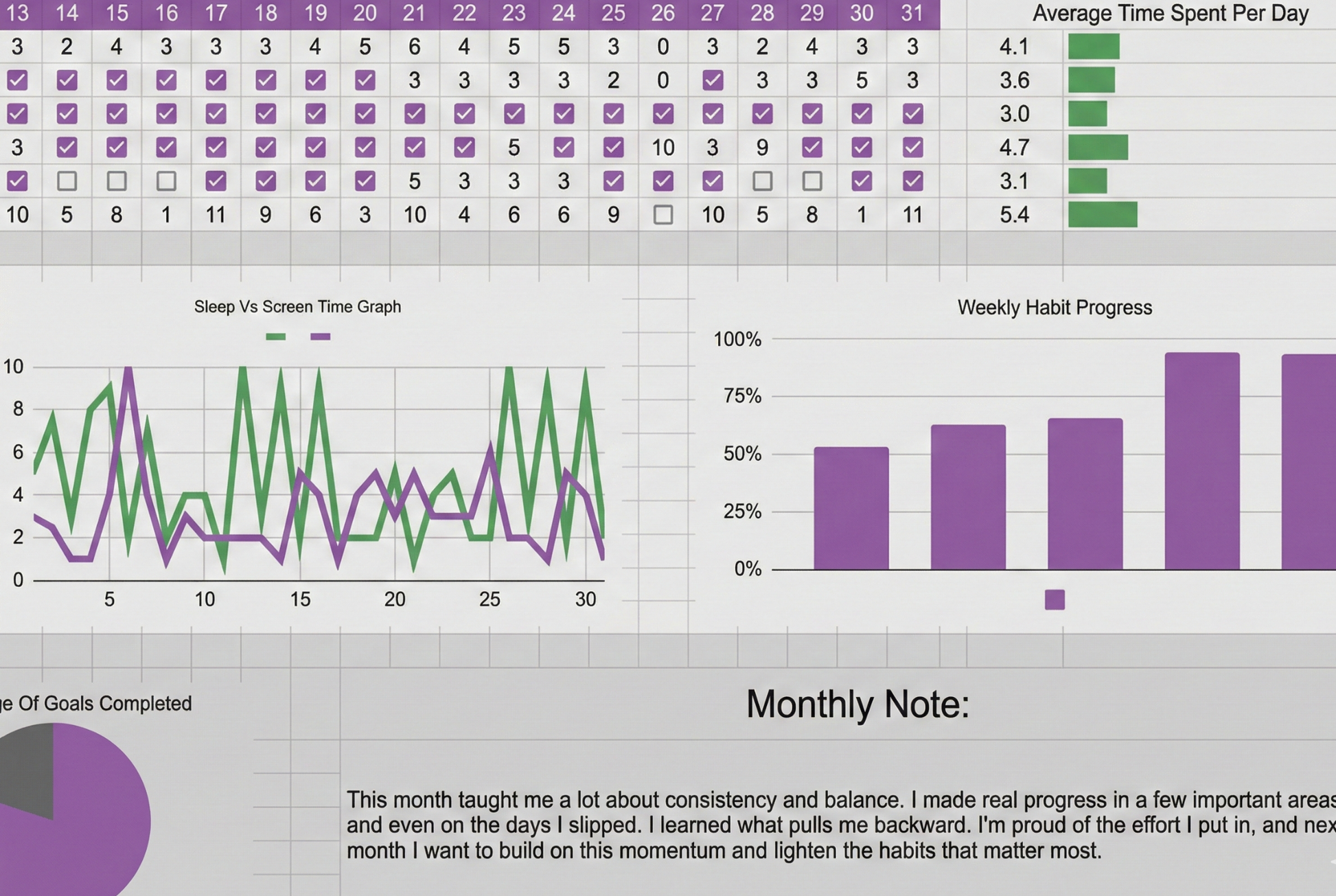 - Real-time progress graphs that visualize your daily and monthly consistency trends without manual updates